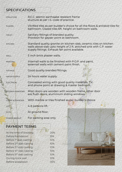 Spread across a built-up area of 1500 sq.ft., this unfurnished apartment offers ample space for a family to live and grow. The apartment features 3 bedrooms, 2 bathrooms, a well-ventilated layout, and is vastu compliant for positive energy flow throughout the space.
